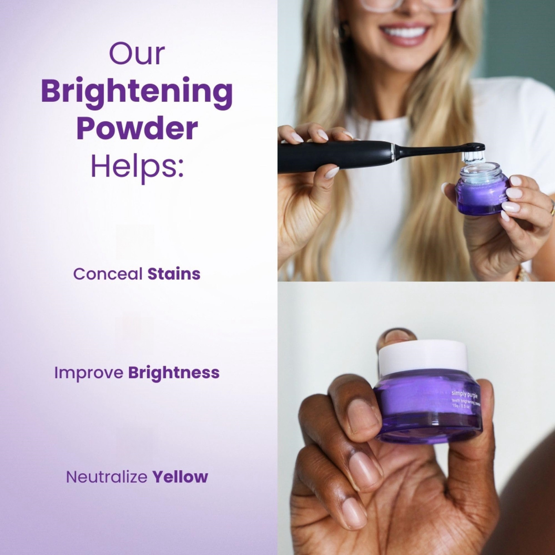 Erzielen Sie ein frischeres, helleres Lächeln mit dem Purple Tooth Powder, formuliert mit PAP+ Technologie und völlig peroxidfrei. Dieses innovative kosmetische Pulver hilft, Gelbtöne zu neutralisieren, Oberflächenflecken zu reduzieren und das natürliche Aussehen Ihrer Zähne zu verbessern — Alle, während sie sanft auf Emaille und Zahnfleisch sind.